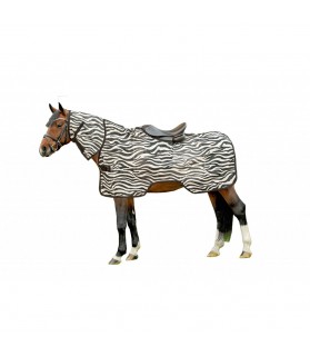 Couverture anti-insecte conçu pour la protection du cheval contre les insectes durant les promenades ou le travail. Elle est résistante aux déchirures, elle comprend une courroie de queue, une découpe de selle. L'encolure non détachable est règlable sur la largeur.
